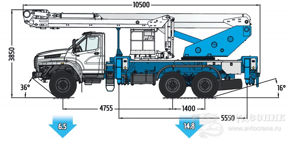 | Максимальная высота подъема, м: | 36,0 м |