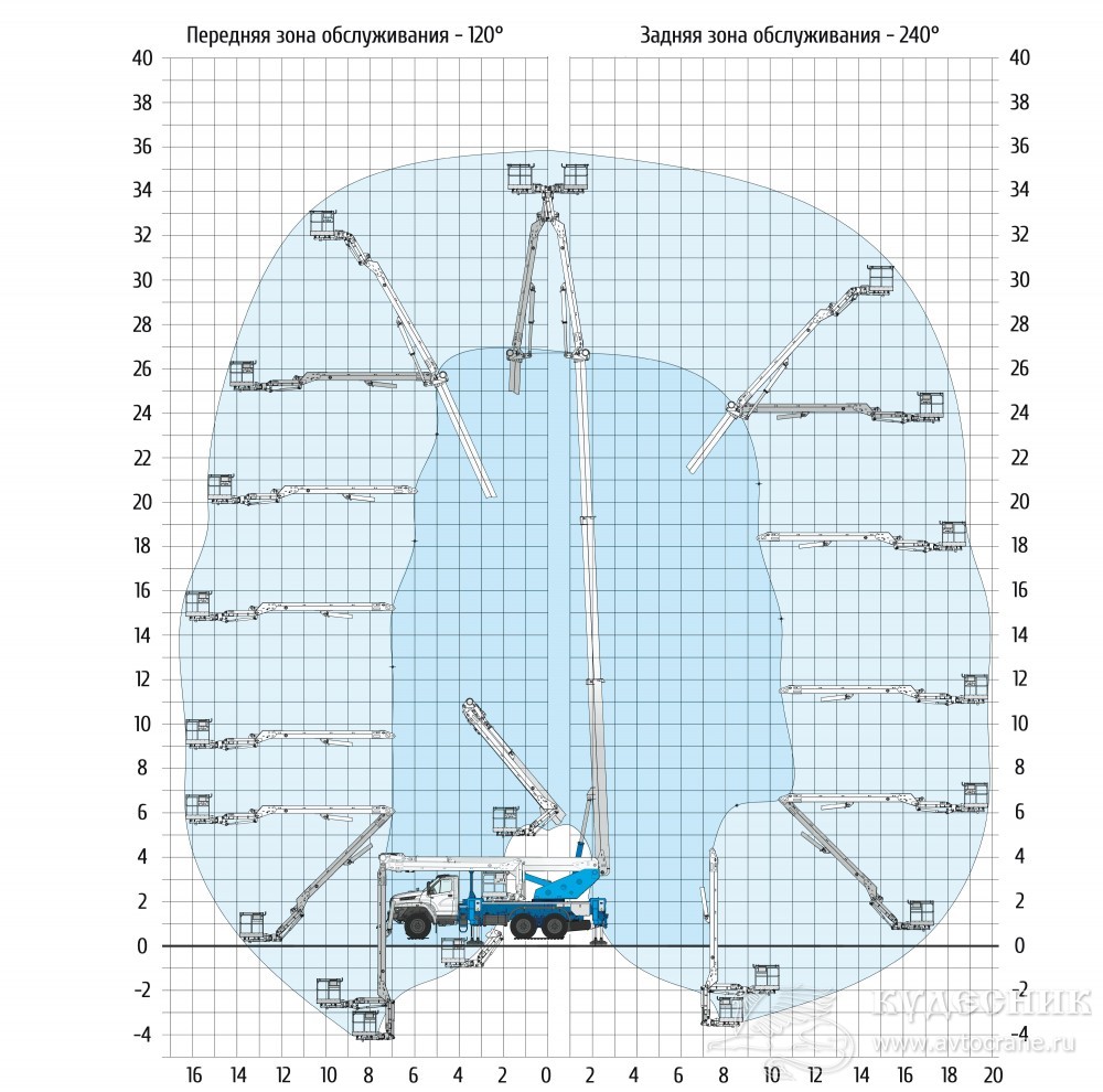 | Максимальный вылет стрелы, м: | 20,0 м |