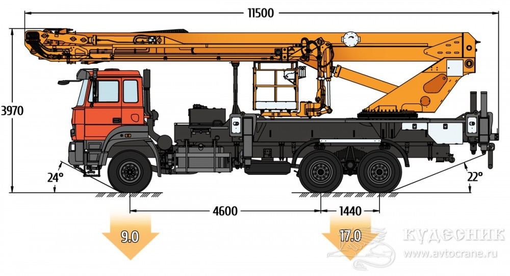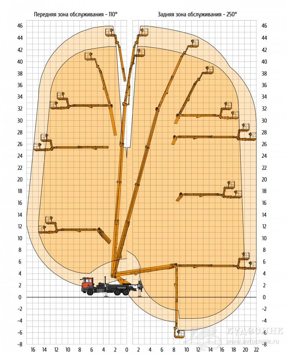 | Максимальный вылет стрелы, м: | 22,0 м |