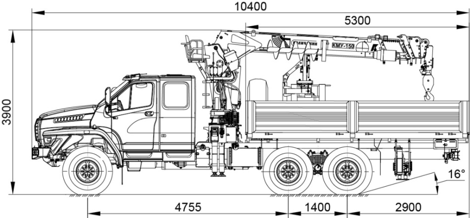 • Краноманипуляторная установка г/п 7 тонн с шестисекционной стрелой длиной 19,0 м;